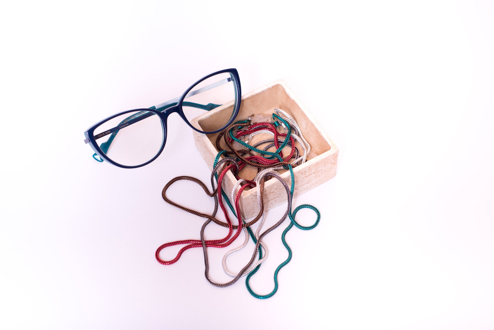 Nasza firma zajmuje się głównie wyrobem galanterii okularowej. Sznurkami, gumkami i łańcuszkami , które służą do tego by okulary były zawsze na swoim miejscu, w zasięgu rąk, nawet w ekstremalnych sytuacjach.